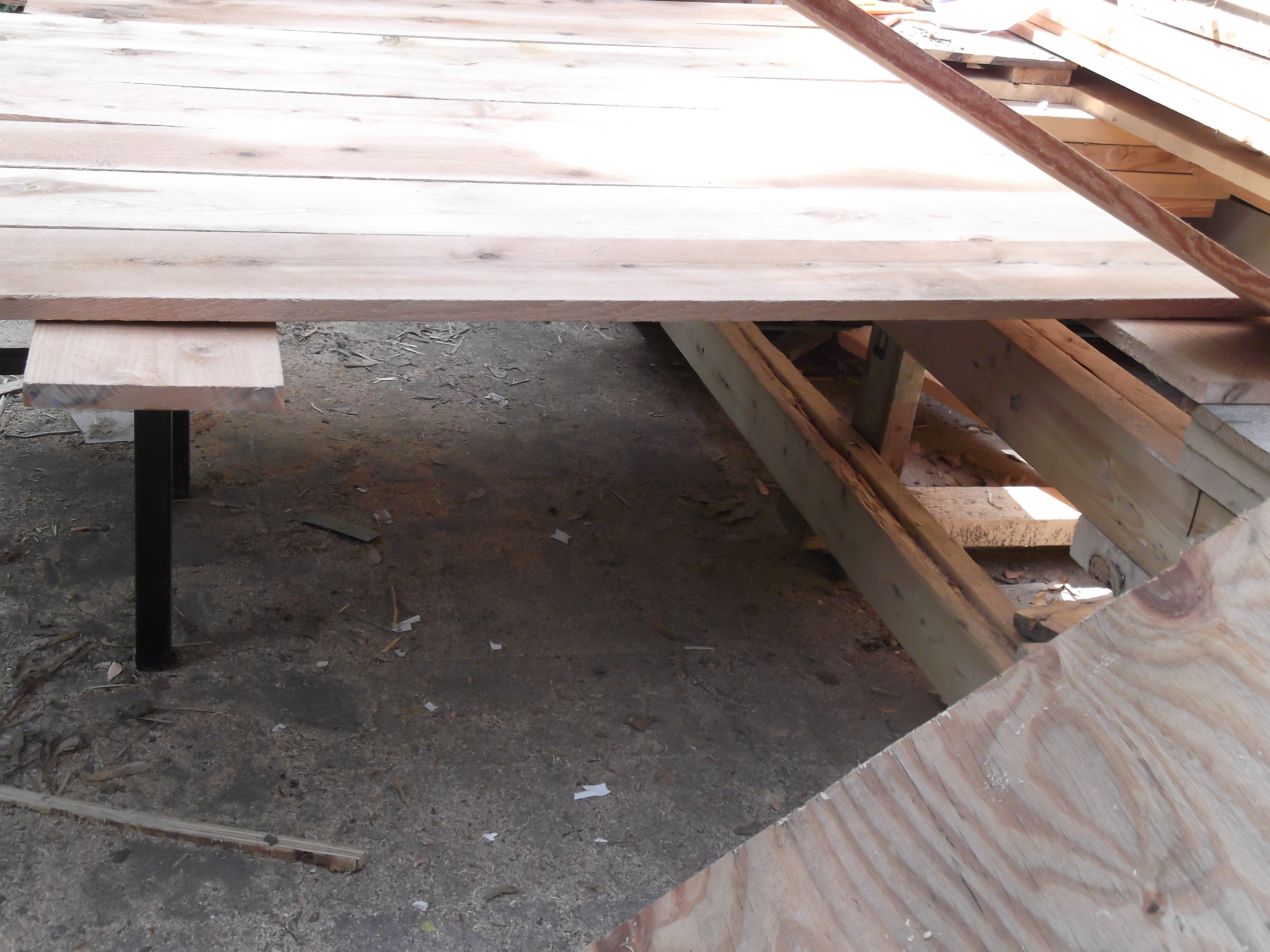 You can see the horizontal support board in the left hand side of the photo and at the outside right as it is supported by a bench.
