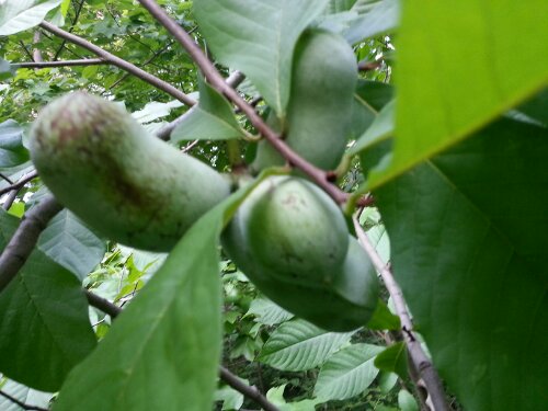 The pawpaw tree is very distinctive. It is a slender plant that tends to grow in large clusters. The thin trunk is often very tall, with thin branches and smooth bark when young. It usually starts dropping off the trees after a good wind early in the fall. Here in the center of the Midwest (literally the center; in the middle north and south/east west) that USUALLY is the end of September. NOT THIS YEAR!! They started dropping or encouraged (shake the trees to get close to but not yet ripe fruit to fall) the last week of August.