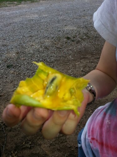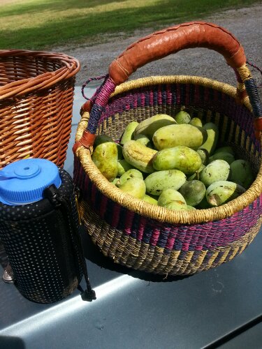 The fruit is delicious and very fragile once ripe. It doesn’t store or travel well. Collect it while you can, if you are lucky enough to find under ripe fruit, freeze it! In the middle of the winter when you are DYING for fresh fruit, you can thaw one out, give it a few days and it will ripen right up. It makes tasty “banana” bread too. When I was a kid I knew someone who would make an ass kicking custard out of it. No real recipe, just take the mashed innards, add some eggs, milk, spices (anything you use with pumpkins works) and some honey, mix and bake. It was so good. It was kind of like a healthy alternative to cheese cake.