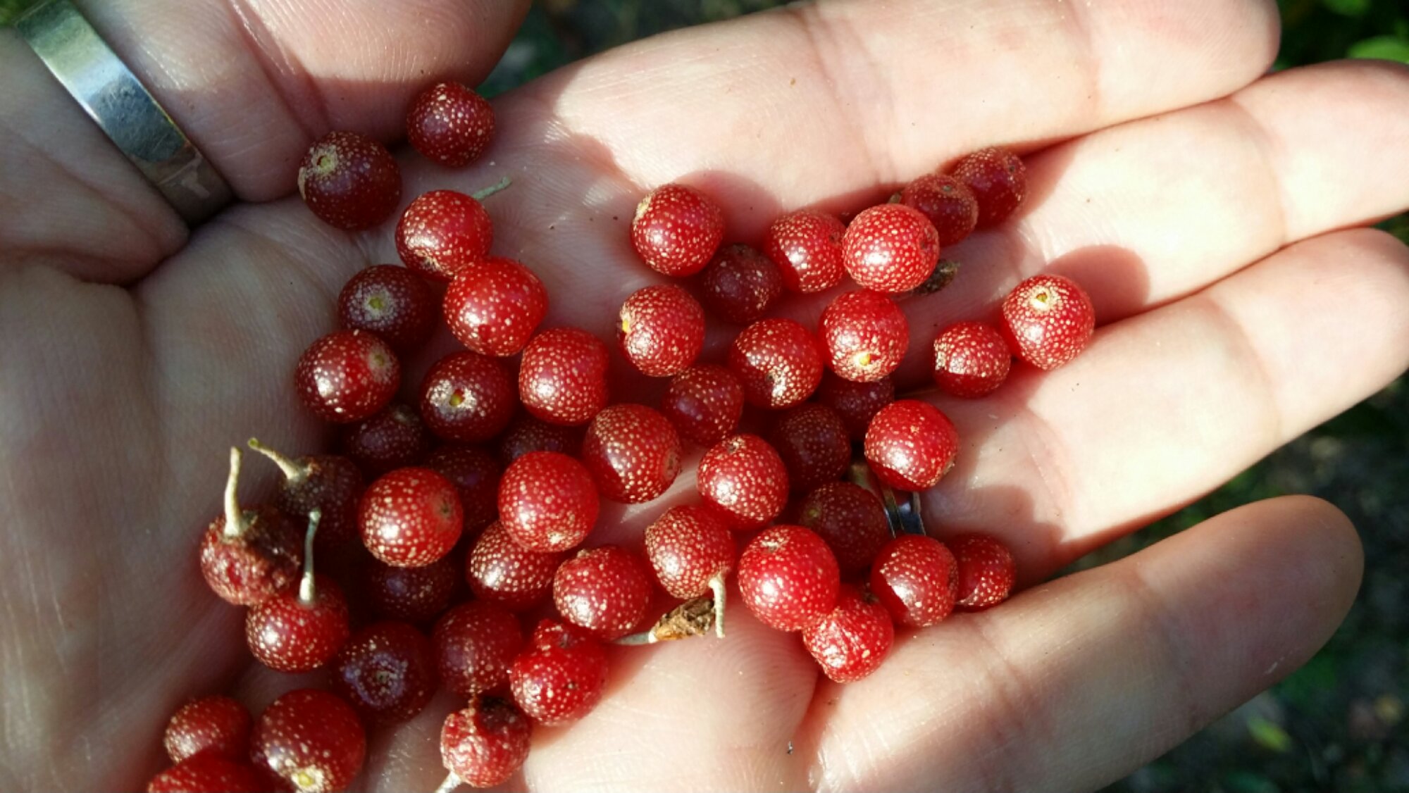 So back to the Autumn Berry. I know a few folks who eat it as is. My kids for instance. If you like sour gummies, this is your fruit. I’m not so much a fan of sour. I usually prepare it but crushing layers in a steel pot (just like blackberries or raspberries) and add water to simmer. When the little fruits are exploding, I strain it off and run it through a foley or chinois. The juice is extracted from the skin, seeds and stems. The pulp goes through the mess and you end up with a product that looks and even smells a little like tomato soup. Just sort of power through that.