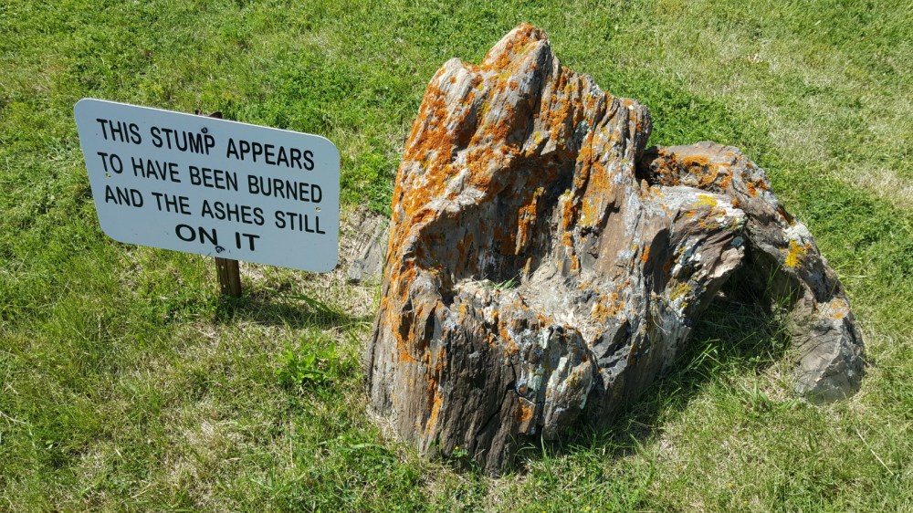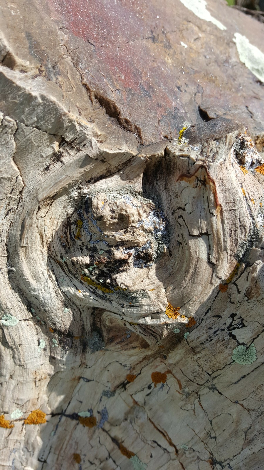 They were trees… that were stone… stone trees. This was my brain: DOES NOT COMPUTE. ERROR. ERROR. DOES NOT COMPUTE. Bark, limbs, knot holes, insect damage, rings… all present, just turned to stone. With lichens growing on them. Brain could not handle contradiction.