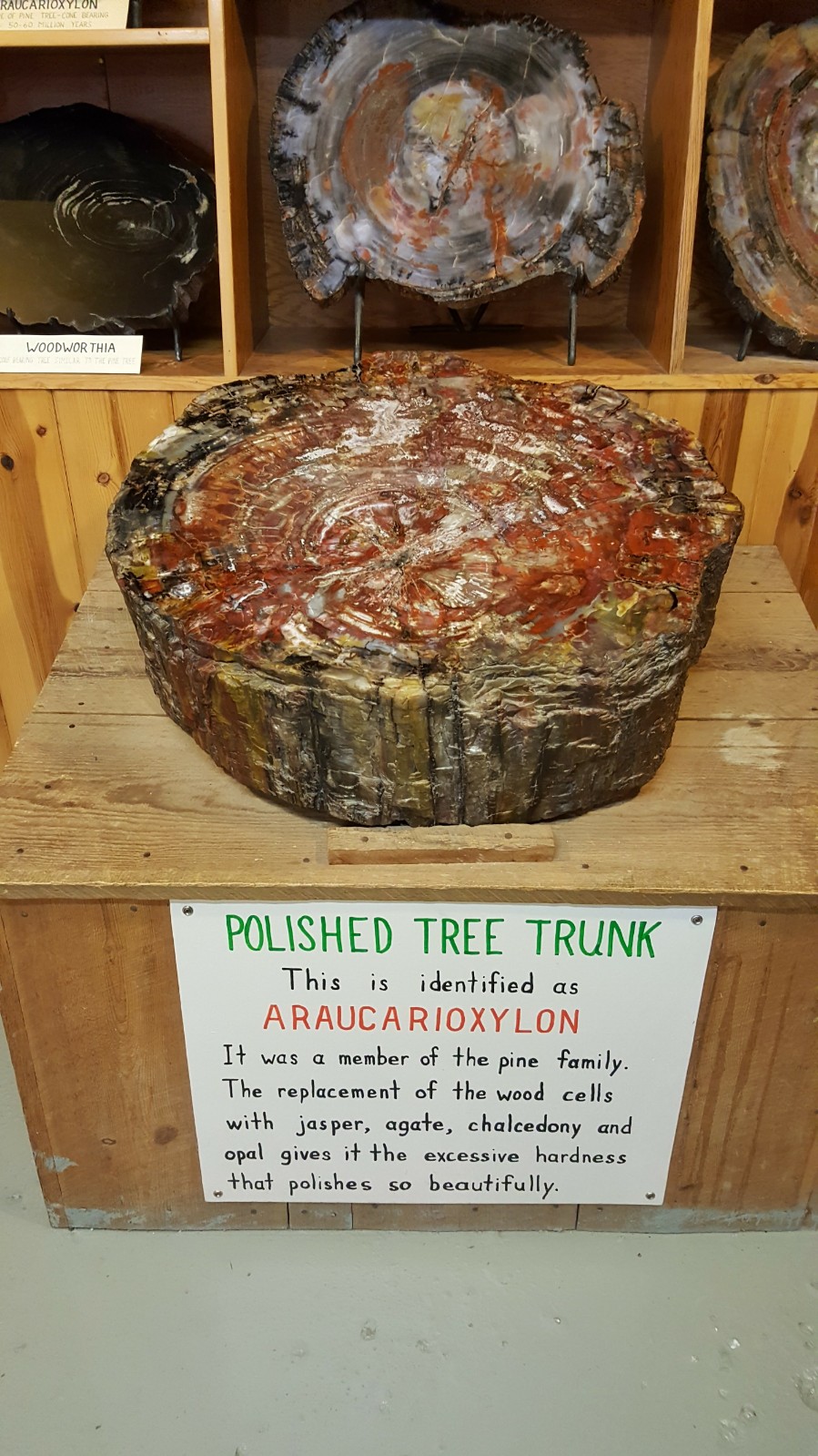 The entrance fee was a very reasonable $5 per person, and the entry way was a very satisfying geology show; ores, fluorescence, various samples of minerals. I loved it. I have been a rock hound since I was a child. You wind your way through the exhibits and then finally to a door that leads outside. That was when my mind was blown. POW!!! Petrified wood became a wholly new entity for me at that moment.