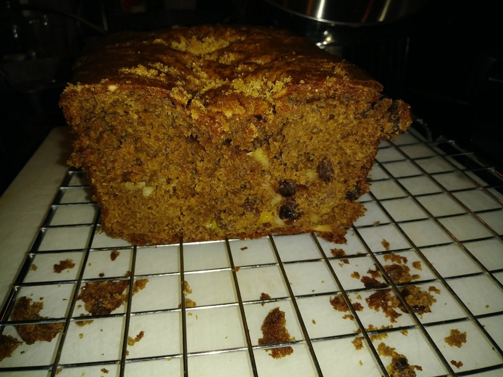 So of COURSE I didn’t take photos during like I would any other flipping time because that would make too much sense. All I have is an after photo and memories because it was not around very long. Not too sweet, hint of banana, but also cinnemon raisin bread, nice crumb, delish! Making it was an adventure so that’s what I’m calling it. Hope everyone is safe out there and let me know if you make an adventure bread of your own.