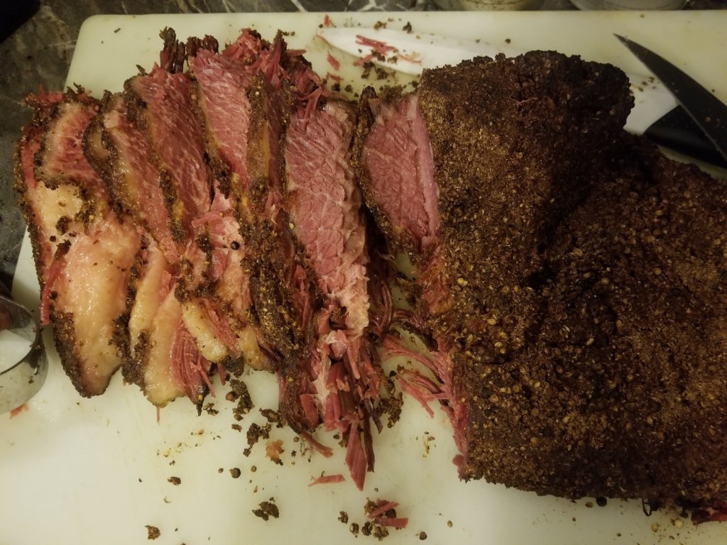 One of the things I’ve learned from YouTube and various blogs is that you can’t make pastrami without making corned beef. I never knew that. Ever. I assumed they had completely different preparations. Nope. You make the corned beef first, and that gets turned into pastrami. So if you want corned beef, you can stop there. If you want pastrami, you can continue. If you buy a large enough brisket, you can have both. That’s what we did.