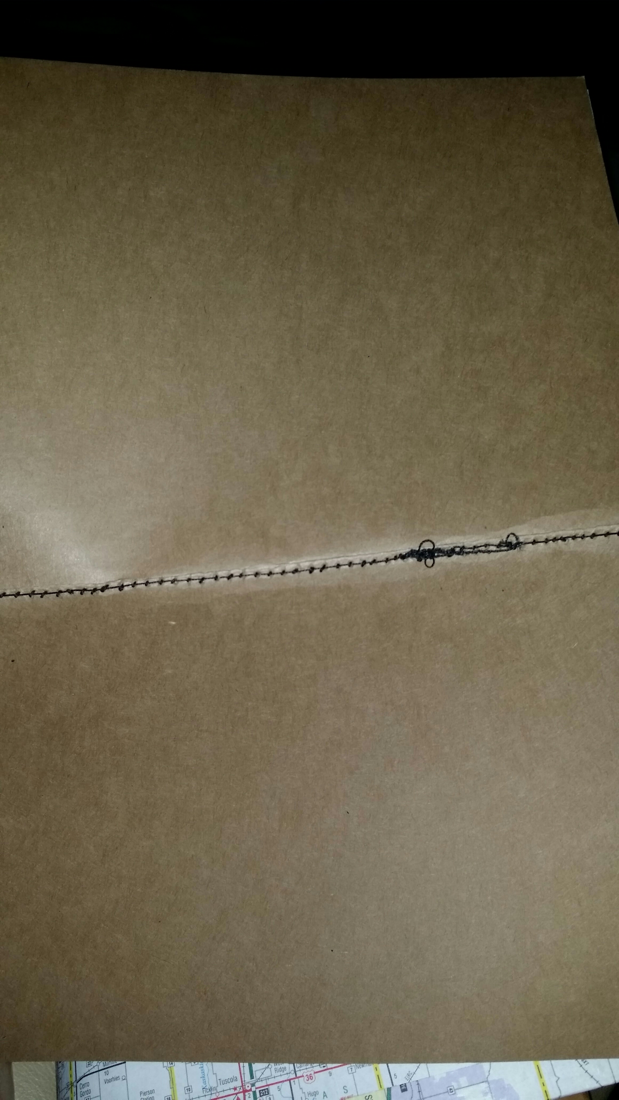 The inside of the sketchbook. Made with a sewing machine.